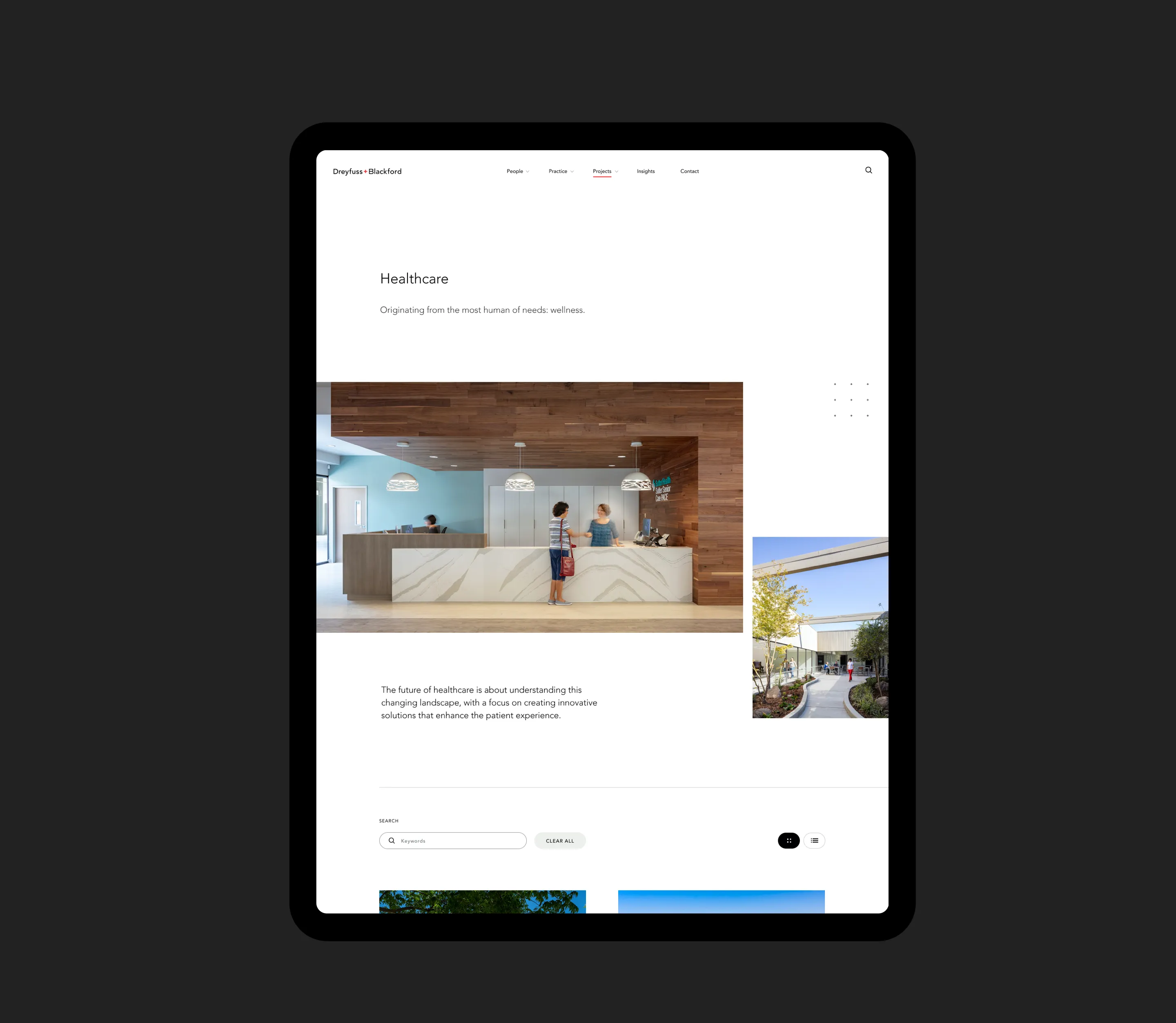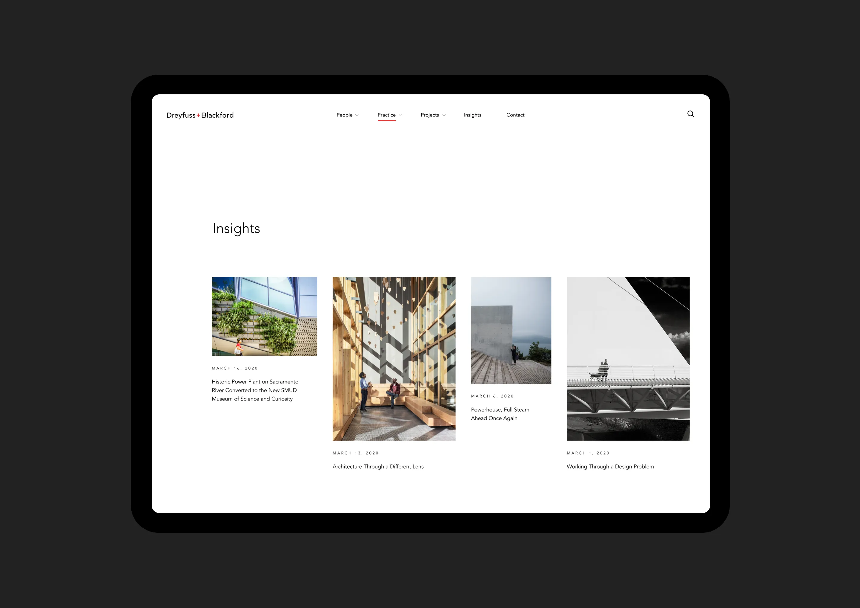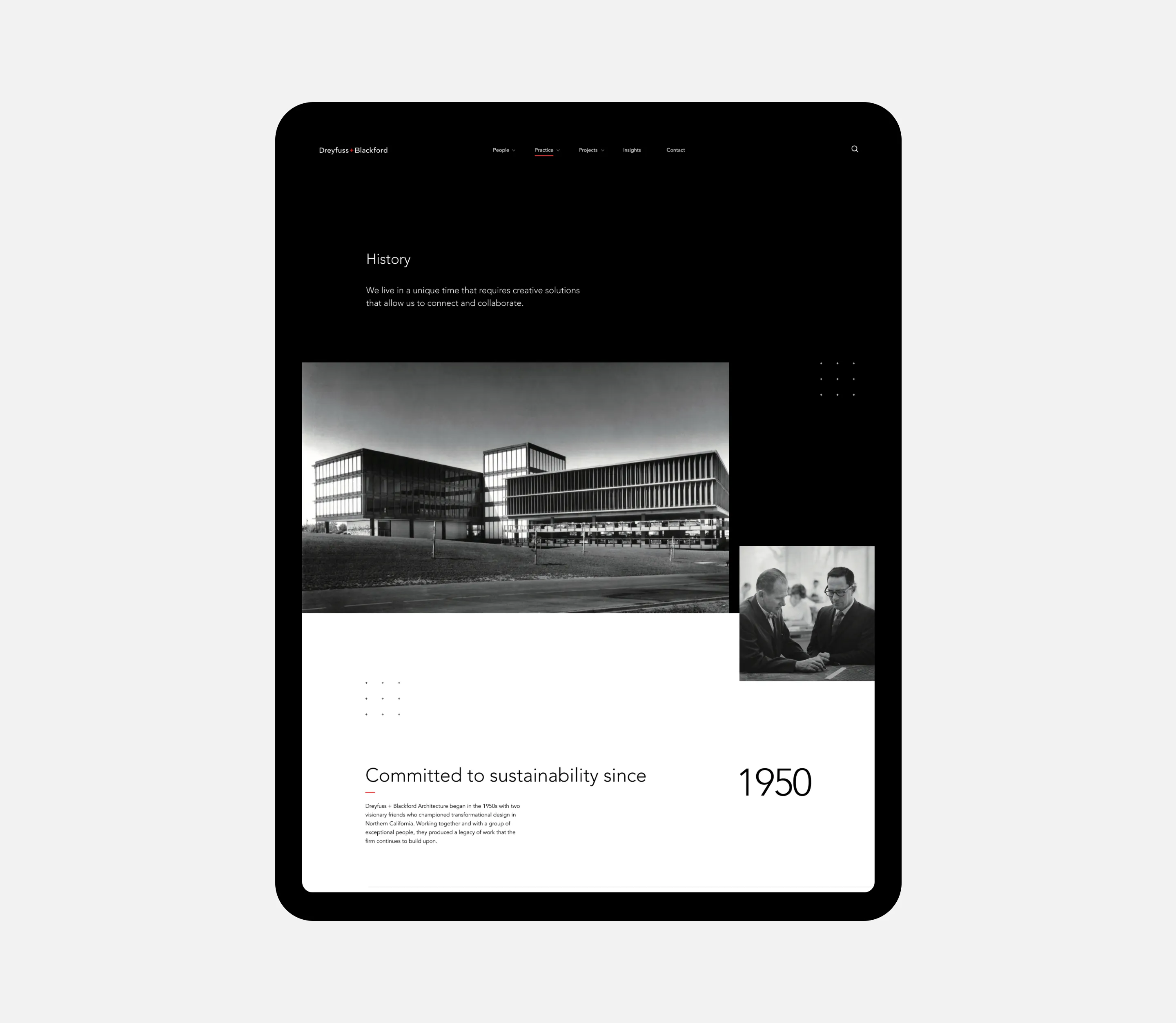 We brought this 70-year legacy to life with an interactive visual identity that mirrors Dreyfuss + Blackford's oeuvre. Our main objective was to revamp the firm's 500+ page website.