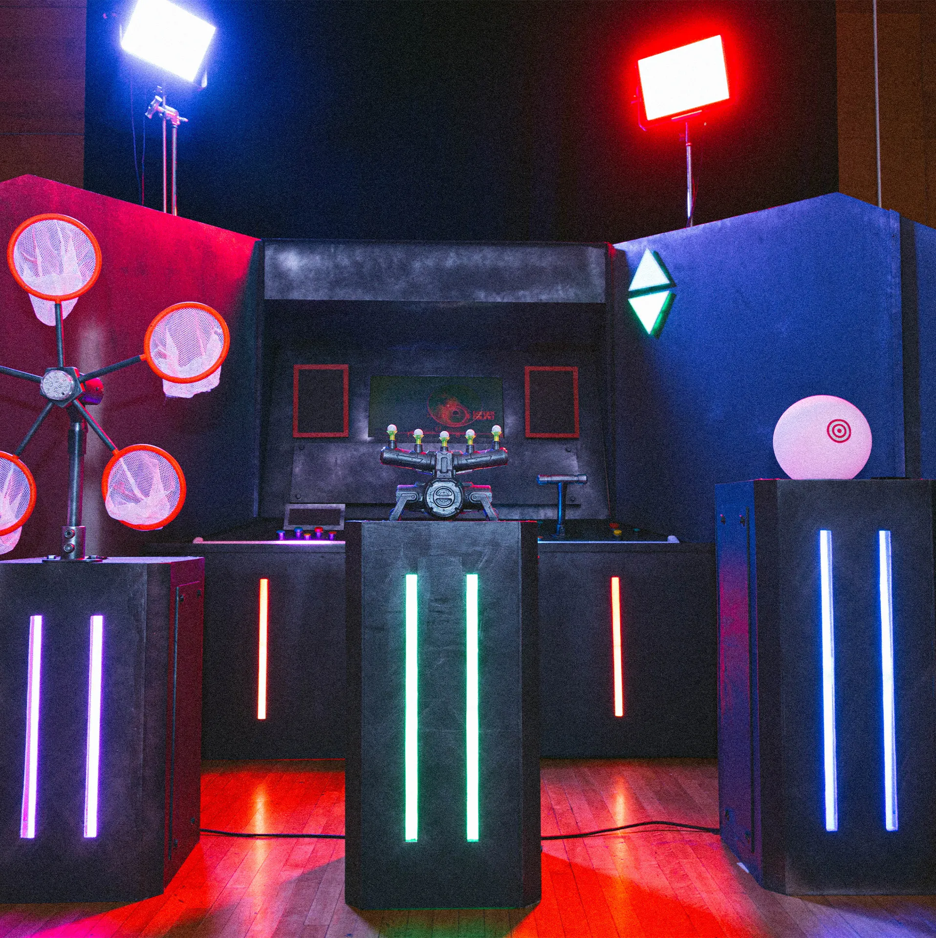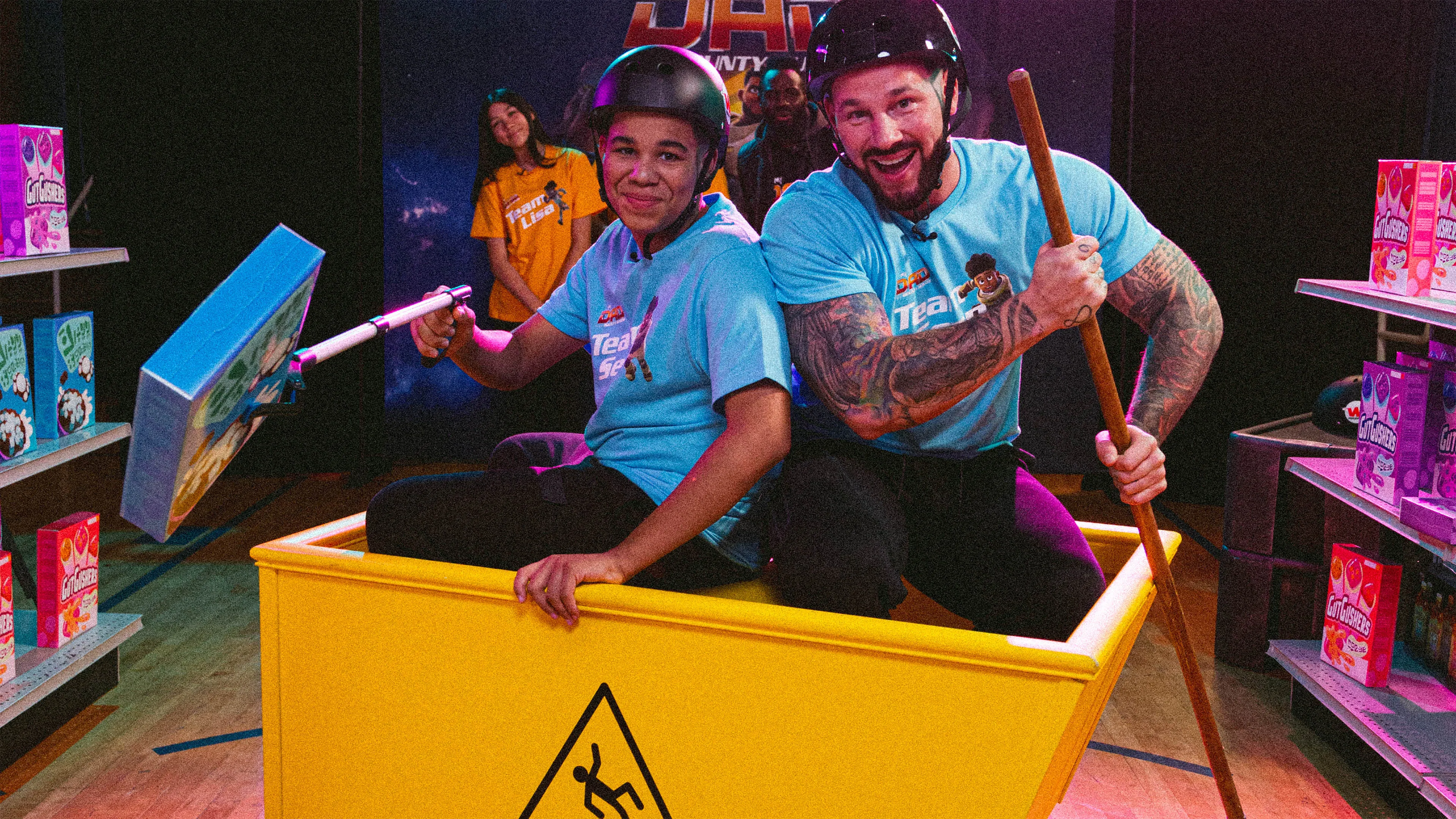 To promote the launch of My Dad the Bounty Hunter, our Netflix partners asked for a game show. So, we made one up and pitted influencer fathers and their kids against each other in three different challenges. We put them in an old-school gym and gave them drones, modded toys, and shopping carts. Think '90s kids competition shows or nighttime carnival games.